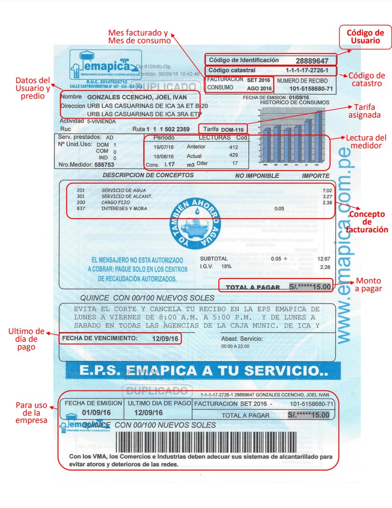 Entender tu recibo de agua es fundamental para controlar tu consumo y evitar sorpresas en el monto a pagar. A continuación, te explicamos cada parte del recibo que emite la empresa de agua de Ica.